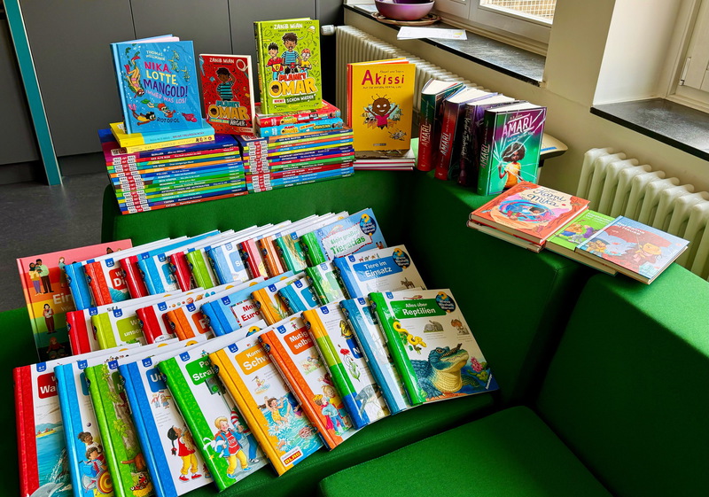 Im Schuljahr 2024/25 gab es gleich zwei große Bücherspenden für die Schüler und Schülerinnen der Auefeldschule Jeder Jahrgang bekam ein großes Buchpaket mit Wissensbüchern zu den verschiedensten Themen. Darüber hinaus durften die Kinder im Rahmen des Schülerparlaments eine Liste mit Bücherwünschen für die Leseinsel erstellen, die ebenfalls erfüllt wurde. Da werden Bücherwürmer-Träume wahr!